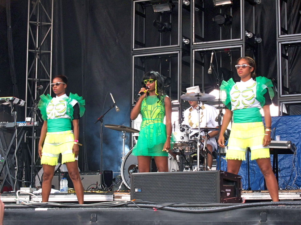 Santigold, accompanied by two dancers/back up singers dressed in neon green/yellow outfits, appeared to the thousands. Santigold and her eclectic dancers were a treat to watch, and defined what a true performance should be. During “The Creator”, from her 2008 self-titled debut album, Santigold chose a lucky few to hop on stage and dance while she sang and rapped her way through the tune. After a quick costume change into a bedazzled black jumper, the funky lady continued the show and hyped the crowd through odd, yet in-sync dancing and on until her very last song.