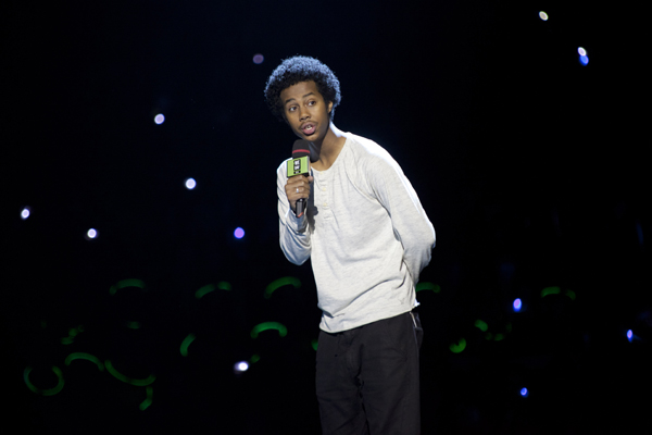 Spoken word artist, Mustafa the Poet, at We Day Toronto 2014. (Photo: Michael Rajzman/Free The Children)