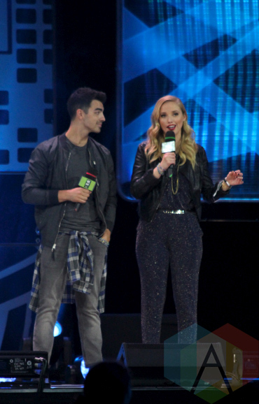 Joe Jonas (left) and Liz Trinnear at We Day Toronto 2014. (Photo: Amanda-Susan Carson/Aesthetic Magazine Toronto)