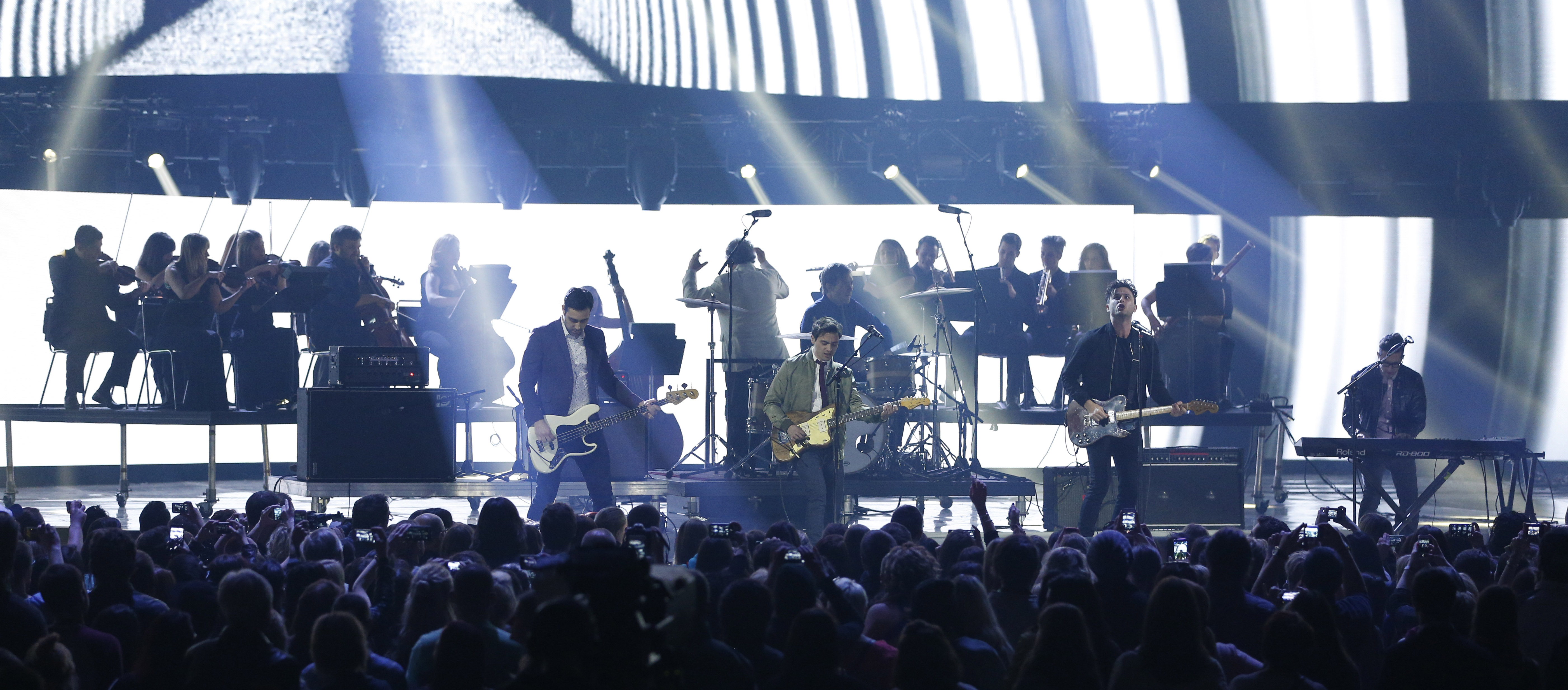 2015 JUNO Awards Rock Album of the Year award winner Arkells perform “Come to Light” accompanied by Boris Brott and the National Academy Orchestra of Canada at FirstOntario Centre in Hamilton on March 15, 2015. (Photo: CARAS)
