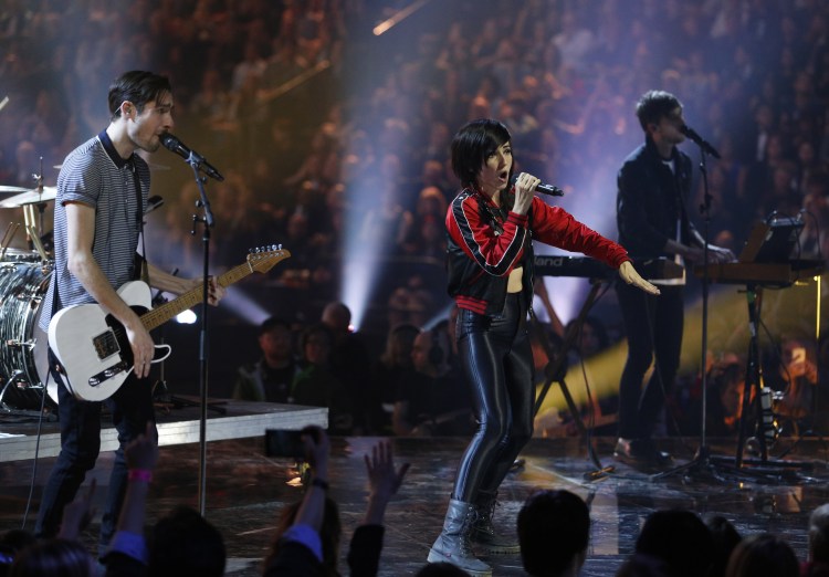 Lights and Sam Roberts Band perform a mashup of “Up We Go” and “We’re All In This Together” during the 2015 JUNO Awards at FirstOntario Centre in Hamilton on March 15, 2015. (Photo: CARAS)