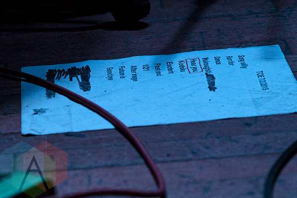 Toe’s set-list at The Mod Club in Toronto on July 13, 2015. (Photo: Theo Rallis/Aesthetic Magazine)