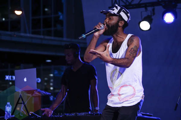 Keita Juma & Brendan Philip performing at Yonge-Dundas Square in Toronto, ON on July 31, 2015. (Photo: Victoria Charko/Aesthetic Magazine)