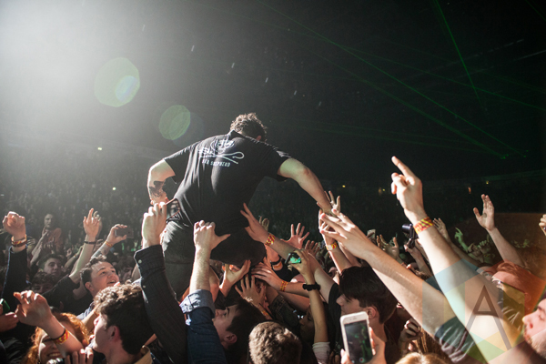 Foals performing at Manchester Arena in Manchester, UK on February 13, 2016. (Photo: Priti Shikotra/Aesthetic Magazine)