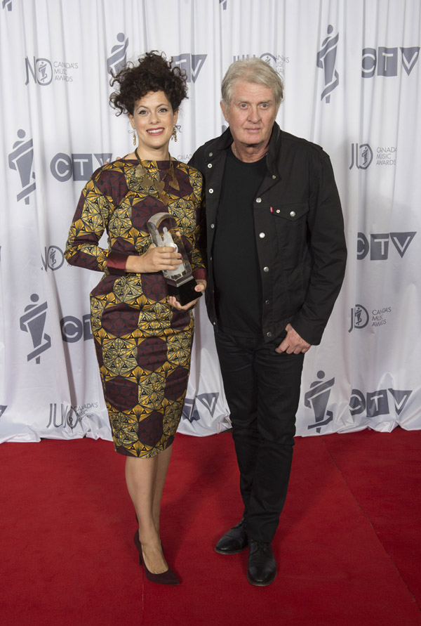 Tom Cochrane, and Regine Chassagne of Arcade Fire at the JUNO Gala Dinner and Awards at the Telus Convention Centre in Calgary on April 2, 2016. (Photo: CARAS)