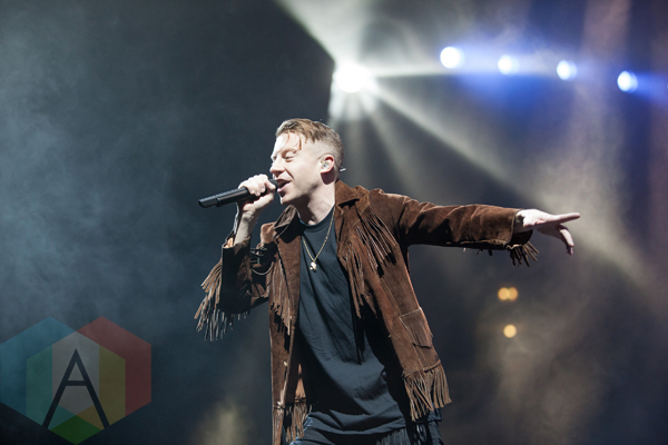 Macklemore and Ryan Lewis performing at the Manchester Arena in Manchester, UK on April 12, 2016. (Photo: Priti Shikotra/Aesthetic Magazine)