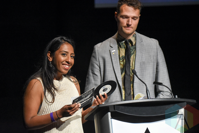 Arupa Mistry and Rich Aucoin during the 2016 Prism Prize gala at the TIFF Lightbox in Toronto on May 15, 2016. (Photo: Jamie Espinoza/Aesthetic Magazine)