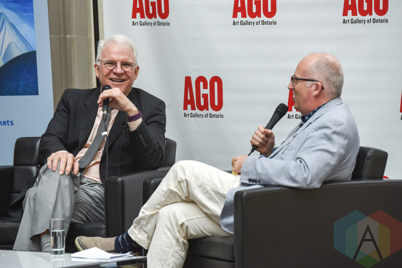 Comedian and actor Steve Martin in conversation with Art Gallery of Ontario curator Andrew Hunter to present The Idea of North: The Paintings of Lawren Harris in Toronto on June 28, 2016. (Photo: Jaime Espinoza/Aesthetic Magazine)