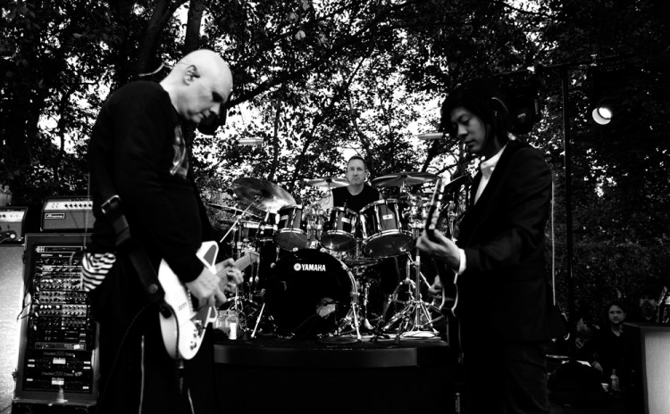 STUDIO CITY, CA – JUNE 28: (L-R) Billy Corgan, Jimmy Chamberlin, and James Iha of The Smashing Pumpkins perform during the 1979 House Party at a private residence on June 28, 2018 in Studio City, California. (Photo: Kevin Mazur/Getty)