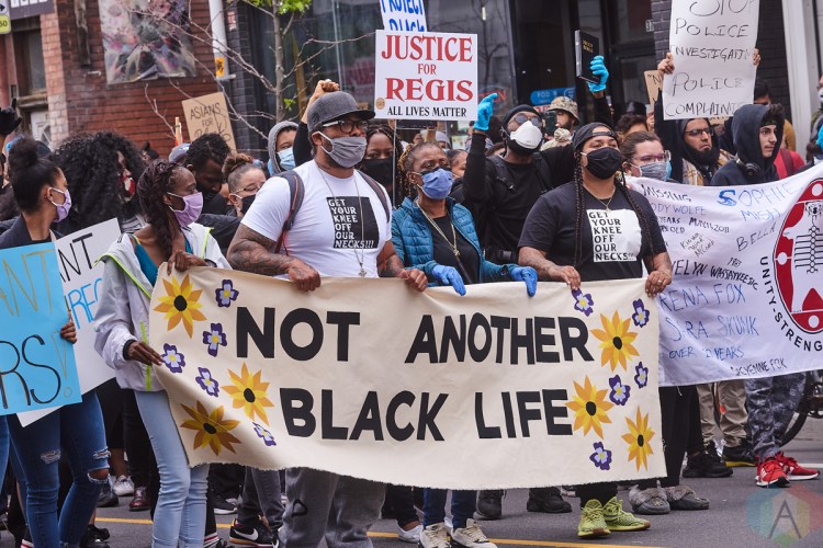 TORONTO, ON – MAY 30: Protestors march in solidarity with family of Regis Korchinski-Paquet in Toronto on May 30, 2020. (Photo: Morgan Harris/Aesthetic Magazine)