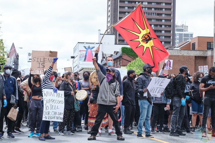 TORONTO, ON – MAY 30: Protestors march in solidarity with family of Regis Korchinski-Paquet in Toronto on May 30, 2020. (Photo: Morgan Harris/Aesthetic Magazine)