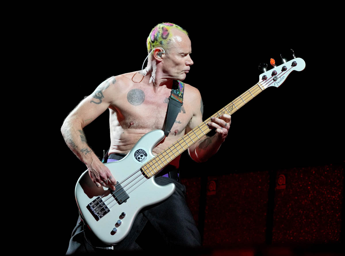 INGLEWOOD, CALIFORNIA – JULY 31: Flea of Red Hot Chili Peppers performs at SoFi Stadium on July 31, 2022 in Inglewood, California. (Photo by Kevin Mazur/Getty Images for Live Nation)