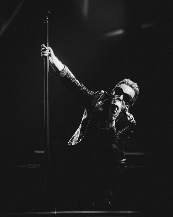 LAS VEGAS, NEVADA – SEPTEMBER 29: Bono, The Edge, Adam Clayton and Bram van den Berg of U2 perform during opening night of U2:UV Achtung Baby Live at Sphere on September 29, 2023 in Las Vegas, Nevada. (Photo by Rich Fury)
