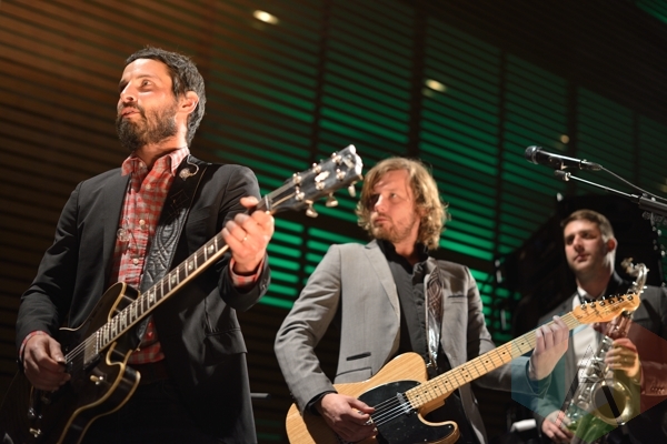 Sam Roberts (left), Dave Nugent (right), and Chet Doxas (far right) of Sam Roberts Band. (Photo: Steve Danyleyko/Aesthetic Magazine Toronto)
